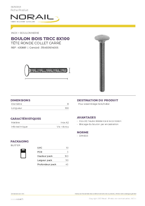 GOUJON FILETE ING FT 12/ 10/ 100 - Boite de 25