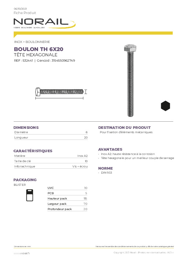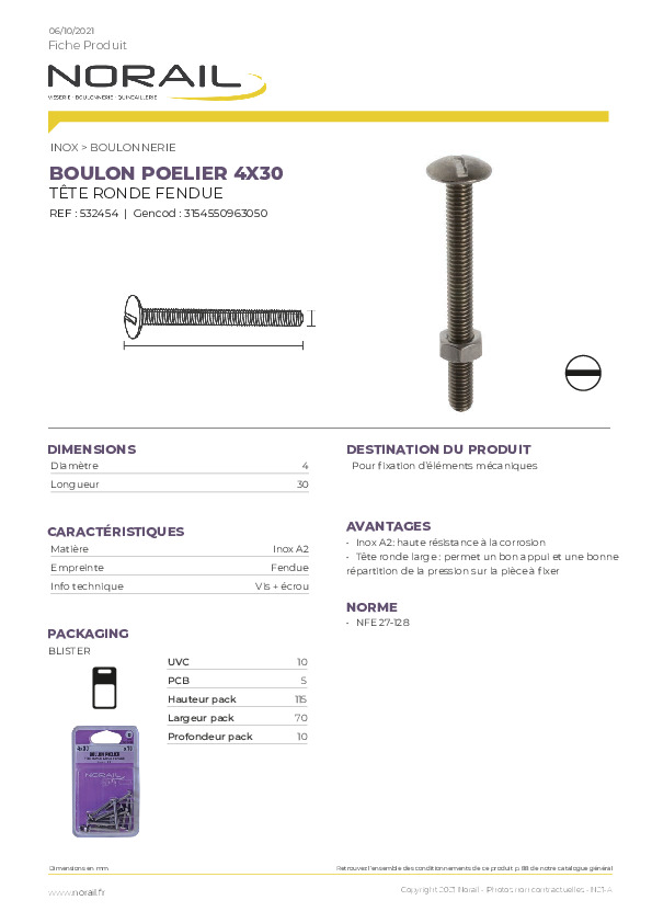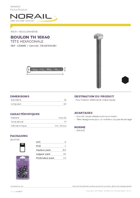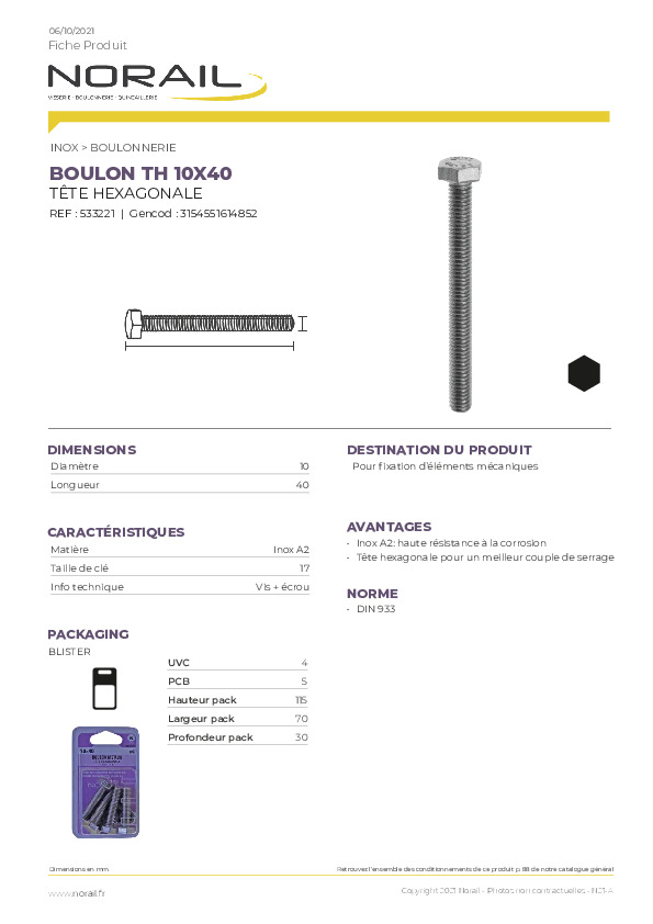 GOUJON FILETE ING FT 10/ 50/ 120 - Boite de 25