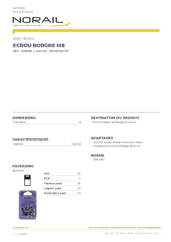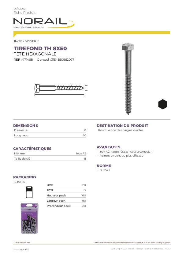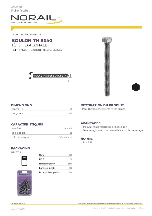GOUJON FILETE ING FT 8/ 5/ 50 - Boite de 50