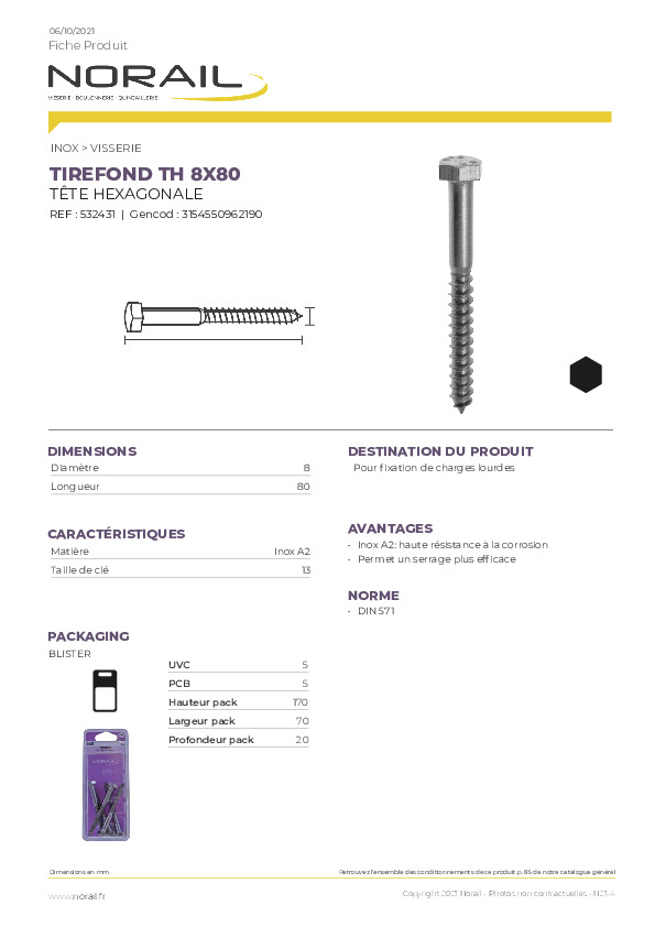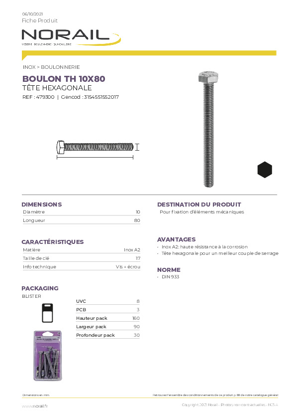 GOUJON FILETE ING FT 8/ 10/ 80 - Boite de 50