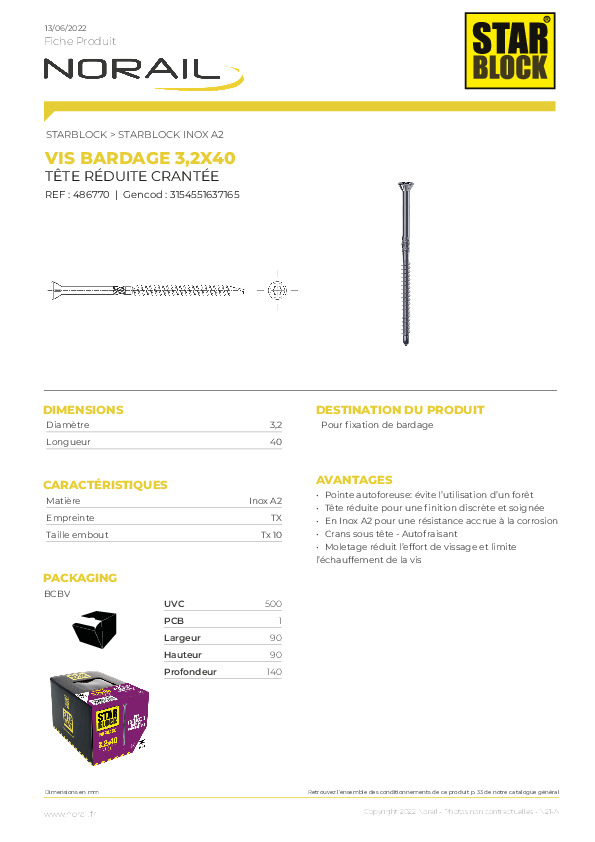 CHEVILLE GOLD + PATTE A VIS M7 - Boite de 100