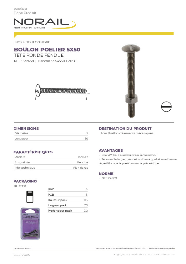 GOUJON FILETE ING FT 12/ 5/ 75 - Boite de 25