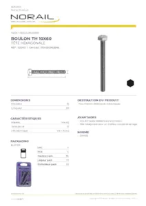 BOULON TÊTE HEXAGONALE MATIERE INOX A2 TAILLE 10X60 CONDITIONNEMENT BLISTER DE 4 PIECES