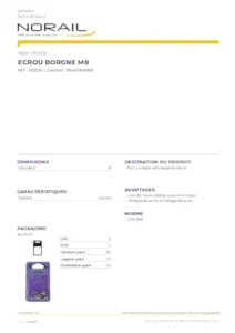 ECROU BORGNE MATIERE INOX A2 DIAMETRE 8 CONDITIONNEMENT BLISTER DE 6 PIECES