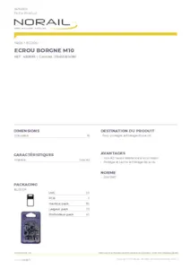 ECROU BORGNE MATIERE INOX A2 DIAMETRE 10 CONDITIONNEMENT BLISTER DE 20 PIECES