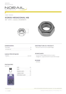 ECROU HEXAGONAL MATIERE INOX A2 DIAMETRE 8 CONDITIONNEMENT BLISTER DE 40 PIECES