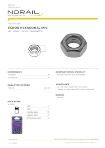 ECROU HEXAGONAL MATIERE INOX A2 DIAMETRE 10 CONDITIONNEMENT BLISTER DE 5 PIECES