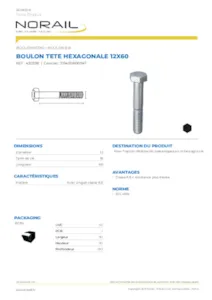 BOULON HEXAGONAL CLASSE 8.8 MATIERE ACIER ZINGUE TAILLE 12X60 CONDITIONNEMENT BOÎTE BEC VERSEUR DE 50 PIECES