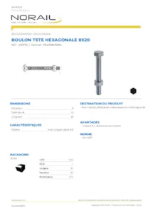 BOULON HEXAGONAL CLASSE 8.8 MATIERE ACIER ZINGUE TAILLE 8X20 CONDITIONNEMENT BOÎTE BEC VERSEUR DE 500 PIECES