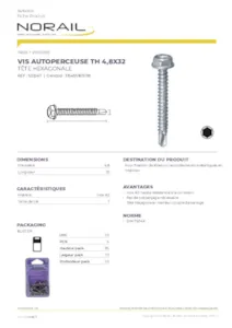 VIS AUTOPERCEUSE TÊTE HEXAGONALE MATIERE INOX A2 TAILLE 4,8X32 CONDITIONNEMENT BLISTER DE 20 PIECES