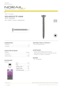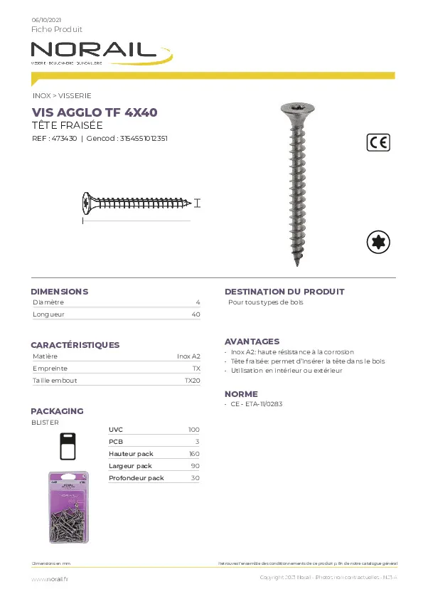 VIS AGGLO TÊTE FRAISEE EMPREINTE TORX MATIERE INOX A2 TAILLE 4X40 CONDITIONNEMENT BLISTER DE 100 PIECES