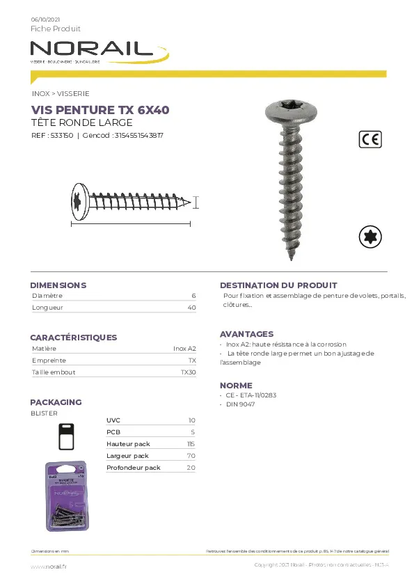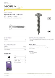 VIS PENTURE TÊTE RONDE EMPREINTE TORX MATIERE INOX A2 TAILLE 6X40 CONDITIONNEMENT BLISTER DE 10 PIECES