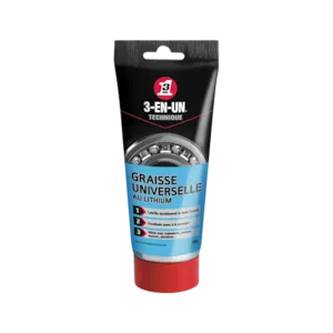 La Graisse Universelle au Lithium 3-EN-UN® TECHNIQUE assure une lubrification longue durée de tous les mécanismes qui roulent, tournent, glissent ou s’emboîtent. Résistante à l’eau et à la pression, adaptée aux conditions extérieures, elle réduit les frottements tout en protégeant de la rouille et de la corrosion. Elle est indiquée pour les moyeux, paliers, galets, engrenages, charnières de portail, etc.