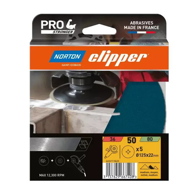 - Les disques fibre Norton Clipper ont été fabriqués avec un grain Norzon et un support fibre 0.8mm permettant une haute performance et un taux d'enlèvement des matériaux agressif, les rendant idéaux pour le décapage et le ponçage des métaux. Les disques fibres peuvent aussi être utilisés avec un plateau support.