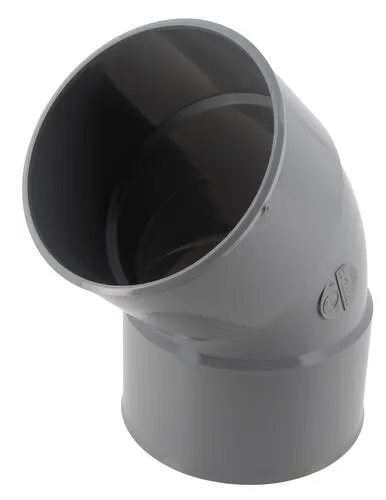 Coude ø 100 mm, femelle-femelle à 45°, à coller, gris, en pvc lisse non microporeux, matérieau recyclable, pour l'évacuation des eaux usées et des eaux vannes, absorbe la dilatation des tuyaux, marquages nf e et nf me réglementation feu