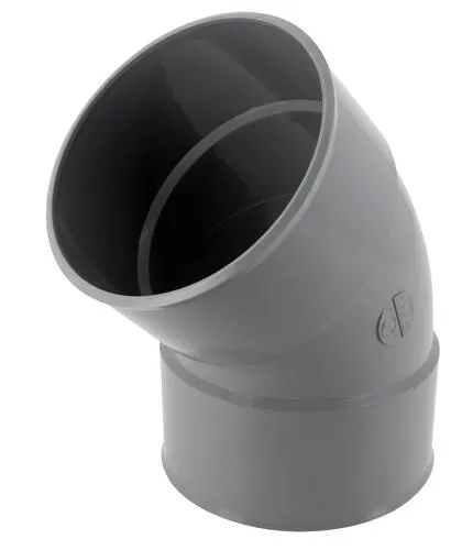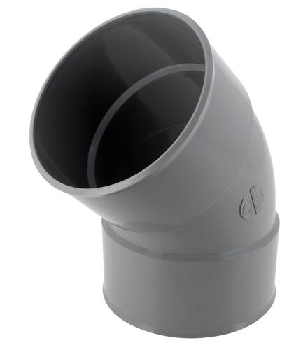 Coude ø 125 mm, femelle-femelle à 45°, à coller, gris, en pvc lisse, permet le changement de direction du réseau, convient aux tubes non pré-manchonnés, marquage nf e et nf me sécurité feu