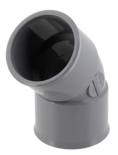 Coude ø 32 mm, femelle-femelle à 45°, à coller, gris, en pvc lisse, permet le changement de direction du réseau, convient aux tubes non pré-manchonnés, marquage nf e et nf me sécurité feu