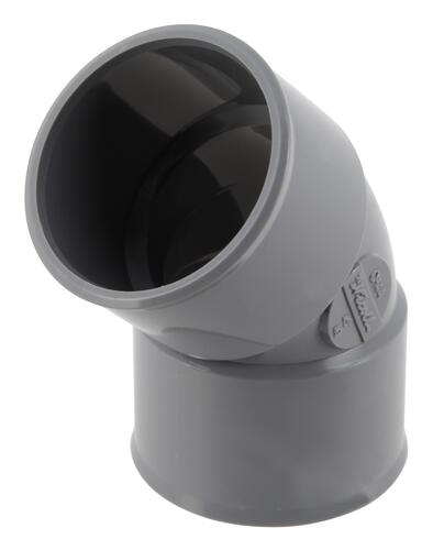 Coude ø 40 mm, femelle-femelle à 45°, à coller, gris, en pvc lisse, permet le changement de direction du réseau, convient aux tubes non pré-manchonnés, marquage nf e et nf me sécurité feu