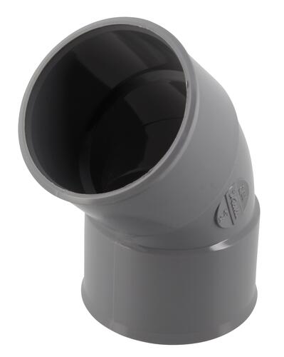 Coude ø 50 mm, femelle-femelle à 45°, à coller, gris, en pvc lisse, permet le changement de direction du réseau, convient aux tubes non pré-manchonnés, marquage nf e et nf me sécurité feu