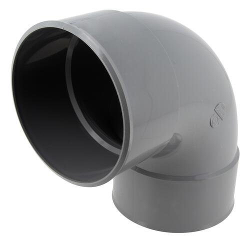 Coude ø 125 mm, femelle-femelle à 87°30, à coller, gris, en pvc lisse non microporeux, matérieau recyclable, pour l'évacuation des eaux usées et des eaux vannes, absorbe la dilatation des tuyaux, marquages nf e et nf me réglementation feu