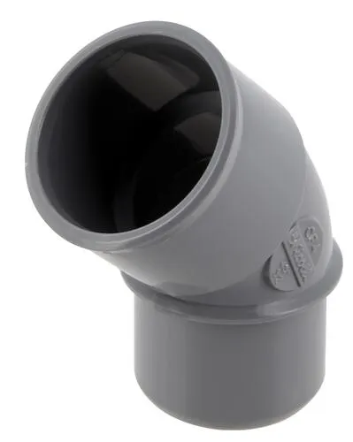 Coude ø 32 mm, mâle-femelle à 45°, à coller, gris, en pvc lisse, permet le changement de direction du réseau, convient aux tubes non pré-manchonnés, marquage nf e et nf me sécurité feu