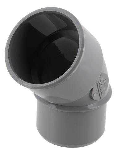 Coude ø 40 mm, mâle-femelle à 45°, à coller, gris, en pvc lisse, permet le changement de direction du réseau, convient aux tubes non pré-manchonnés, marquage nf e et nf me sécurité feu