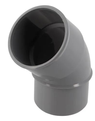 Coude ø 50 mm, mâle-femelle à 45°, à coller, gris, en pvc lisse, permet le changement de direction du réseau, convient aux tubes non pré-manchonnés, marquage nf e et nf me sécurité feu