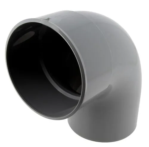 Coude ø 125 mm, mâle-femelle à 87°30, à coller, gris, en pvc lisse non microporeux, matérieau recyclable, pour l'évacuation des eaux usées et des eaux vannes, absorbe la dilatation des tuyaux, marquages nf e et nf me réglementation feu