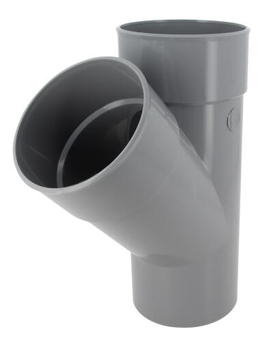 Culotte simple, ø 125 mm, mâle-femelle à 45°, à coller, gris, en pvc lisse, permet le raccordement de canalisations sur collecteurs ou chutes tout en respectant le fil d’eau, marquage nf e et nf me sécurité feu