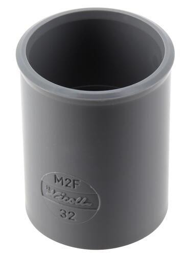 Manchon, ø 32 mm, femelle-femelle, à coller, gris, en pvc lisse, permet de réaliser une jonction entre deux tubes, pour l'évacuation des eaux usées, marquage nf e et nf me sécurité feu