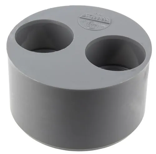 Tampon de réduction double, ø 100/40/40 mm, mâle-femelle, à coller, gris, en pvc, permet la réduction de un ou deux appareils tout en respectant le sens du fil d’eau, marquage nf me sécurité feu