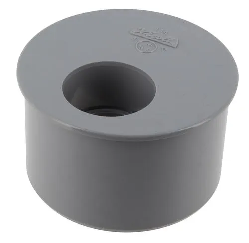 Tampon de réduction pour adaptation sur tube non prémanchonné de ø 100 mm, ø 93/40 mm, mâle-femelle, à coller, gris, en pvc, permet la réduction d'un diamètre tout en respectant le sens du fil d'eau, marquage nf e et nf me sécurité feu