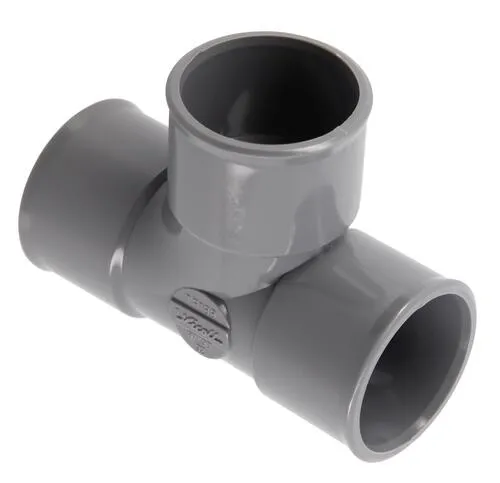 Té pied de biche simple, ø 32 mm, femelle-femelle à 87°30, à coller, gris, en pvc, permet de raccorder un appareil sur un petit collecteur, pour tube non pré-manchonné, marquage nf e et nf me sécurité feu