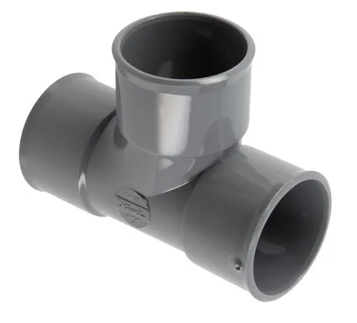 Té pied de biche simple, ø 40 mm, femelle-femelle à 87°30, à coller, gris, en pvc, permet de raccorder un appareil sur un petit collecteur, pour tube non pré-manchonné, marquage nf e et nf me sécurité feu