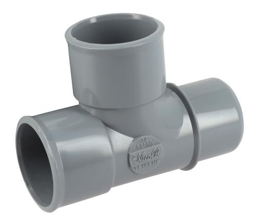 Té pied de biche simple, ø 32 mm, mâle-femelle à 87°30, à coller, gris, en pvc, permet de raccorder un appareil sur un petit collecteur, pour tube non pré-manchonné, marquage nf e et nf me sécurité feu