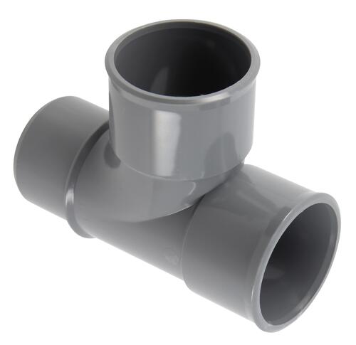Té pied de biche simple, ø 40 mm, mâle-femelle à 87°30, à coller, gris, en pvc, permet de raccorder un appareil sur un petit collecteur, pour tube non pré-manchonné, marquage nf e et nf me sécurité feu