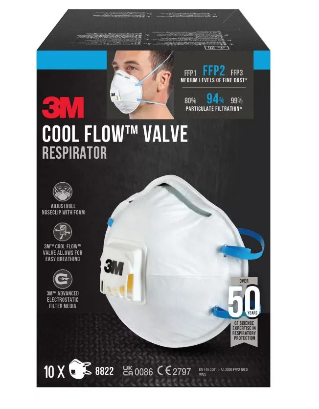 - MASQUE ANTI-PARTICULES 3M CONÇU POUR FACILITER LA RESPIRATION - La valve 3M™ Cool Flow™ favorise l'évacuation de l'air chaud et humide expiré - Le média filtrant électrostatique exclusif de 3M est conçu pour faciliter la respiration