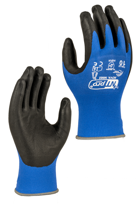 GANT TRICOT? POLYESTER FIL RECYCL? GRS/LYCRA JAUGE 15 BLEU ENDUIT MOUSSE DE NITRILE PAUME
