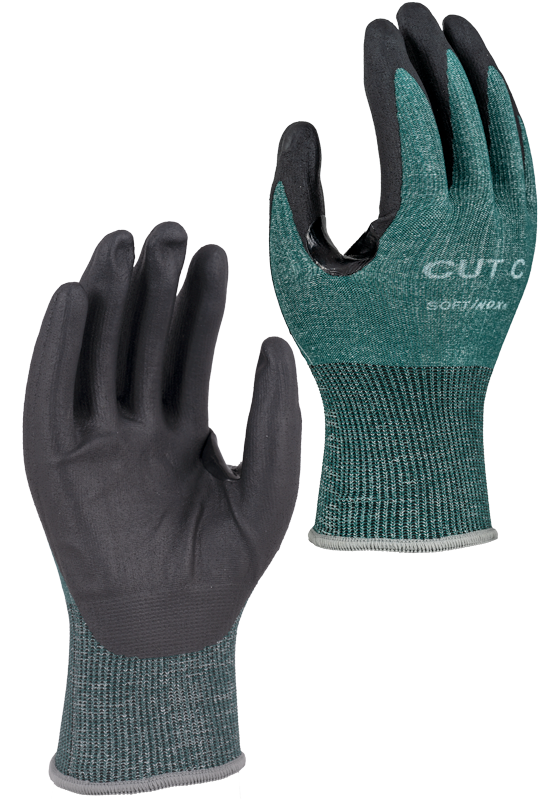 GANT HPPE VERT ENDUIT MOUSSE DE NITRILE NOIR JAUGE 18 RENFORT PINCE NITRILE CUT C