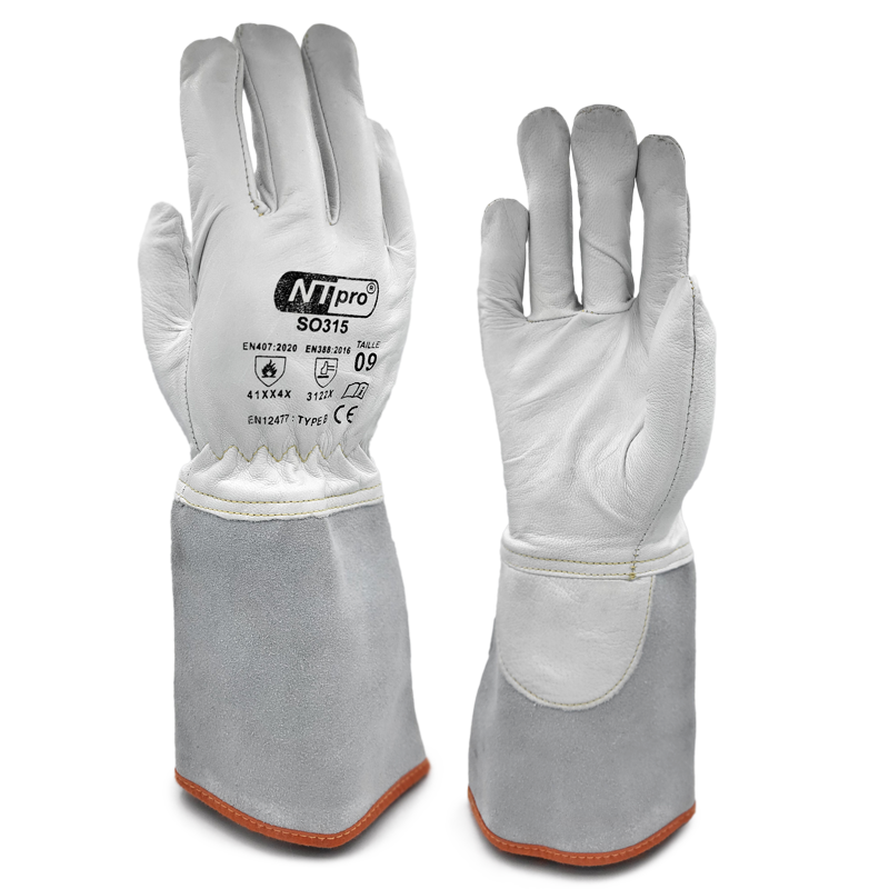 GANT SOUDEUR PAUME FLEUR DE BOVIN DOS CROUTE, MANCHETTE 15 CM, COUSU ARAMIDE.