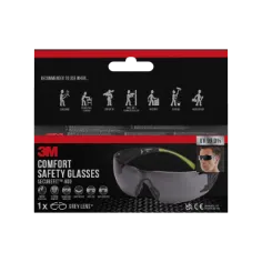 - Utilisez les lunettes de sécurité confortables 3M™ SecureFit™ 400 pour une protection oculaire enveloppante. Elles sont teintées en gris pour un usage en extérieur. Pesant 19 grammes seulement et dotées de la technologie 3M™ de répartition de la pression sur les tempes, qui permet aux branches rembourrées de s'ajuster naturellement à la taille de la tête pour offrir un ajustement sûr et confortable. Le pont nasal souple et réglable offre une personnalisation encore plus grande de l'ajustement et réduit les glissements dus aux mouvements de la tête. Les branches larges et flexibles sont compatibles avec les casques anti-bruit. La conception enveloppante offre un large champ de vision. Les verres sans monture en polycarbonate sont traités contre les rayures et la buée pour une durabilité et une visibilité accrues. Les verres en polycarbonate bloquent 99,9 % des rayons UVA, UVB et UVC entre 200 et 380 nm. Conforme à la norme européenne EN 166:2001.