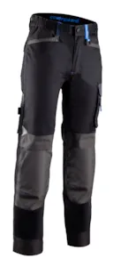 - SERGÉ: 65% Polyester / 32% Coton / 3% Élasthanne - 250g/m2 + empiècements Polyamide/Stretch + Oxford fantaisie 300D Réhausse dos 7 poches 2 sangle outils Panneau entrejambe en stretch Poches pour genouillères Finitions de couleur contrastée Triple surpiqûres Ourlet supplémentaire : +5cm Coupe regular EN 14404 : Type 2