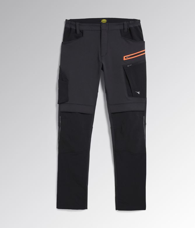 - Pantalon performance multimatière élastique. Ceinture profilée avec élastique sur les côtés pour plus de confort. Poche latérale ample avec fermeture tippée. Fermeture zippée thermosoudée fluo contrastante. Poche latérale porte-mètre et sangle porte-marteau réglable. Poche porte-genouillères avec ouverture par le haut en tissu anti-abrasion, présente aussi dans la partie du talon. Fermeture zippée contrastante sur l’arrière avec filet pour un tissu plus respirant. Longueur ajustable grâce à des boutons-pression.