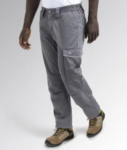 - Pantalon en twill stretch de polyester, coton et élasthanne, avec poches porte-genouillères, poche latérale, détails réfléchissants, poche porte-mètre, porte-marteau, taille élastique, triple couture. Détails contrastés en toile anti-abrasion.