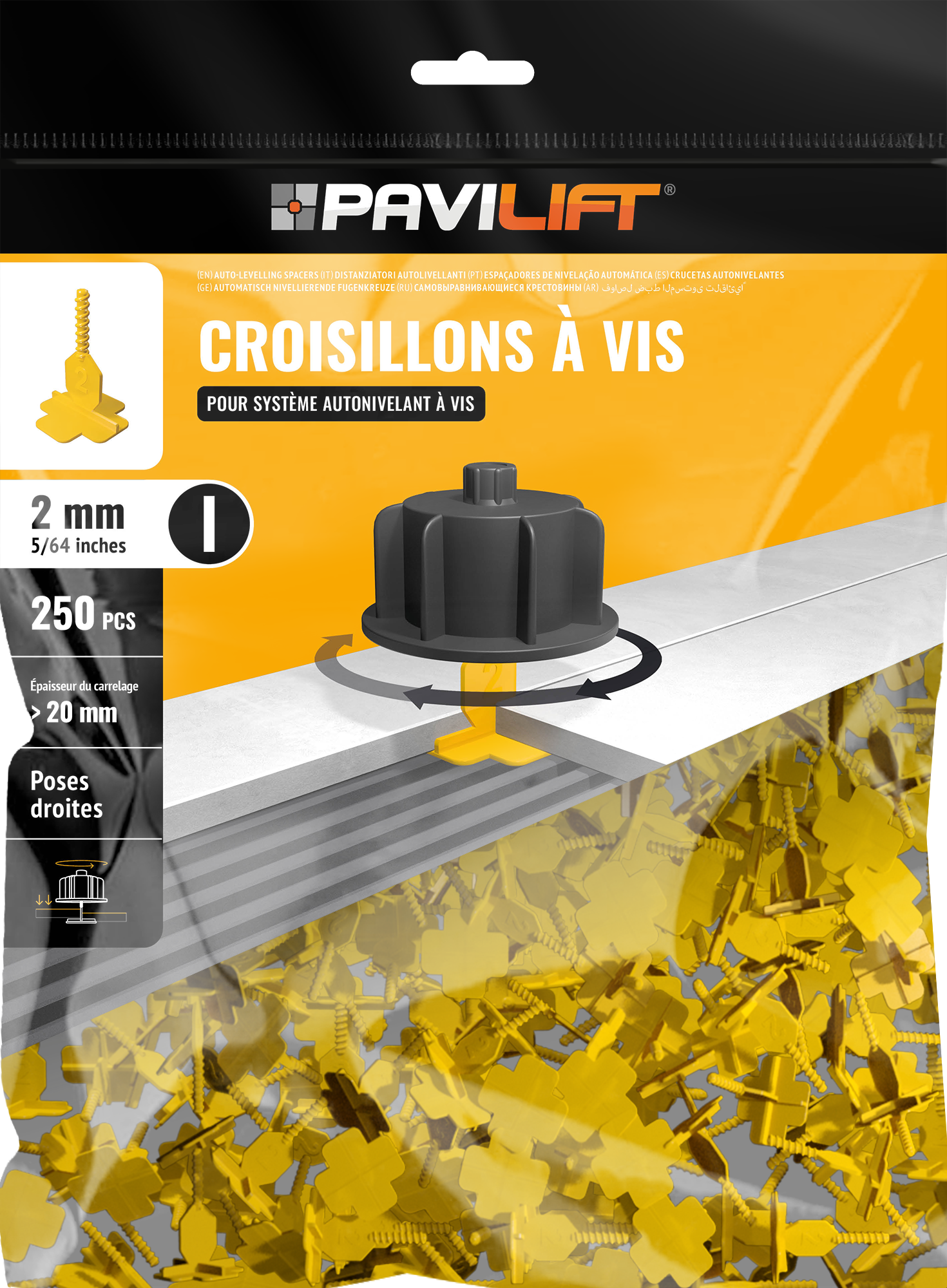 Sachet de 250 Croisillons autonivelants a vis 2 mm / I