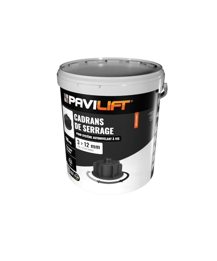 - Le cadran de serrage noir sert à niveler les carreaux entre eux. Il assure un alignement parfait sans décalage et est idéal pour tous types de carrelages. En quelques secondes, il se visse sur les croisillons autonivelants.